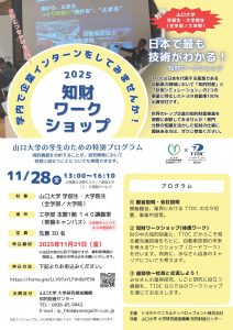 【参加対象】 山口大学 学部生・大学院生(全学部/大学院) ※定員先着30名