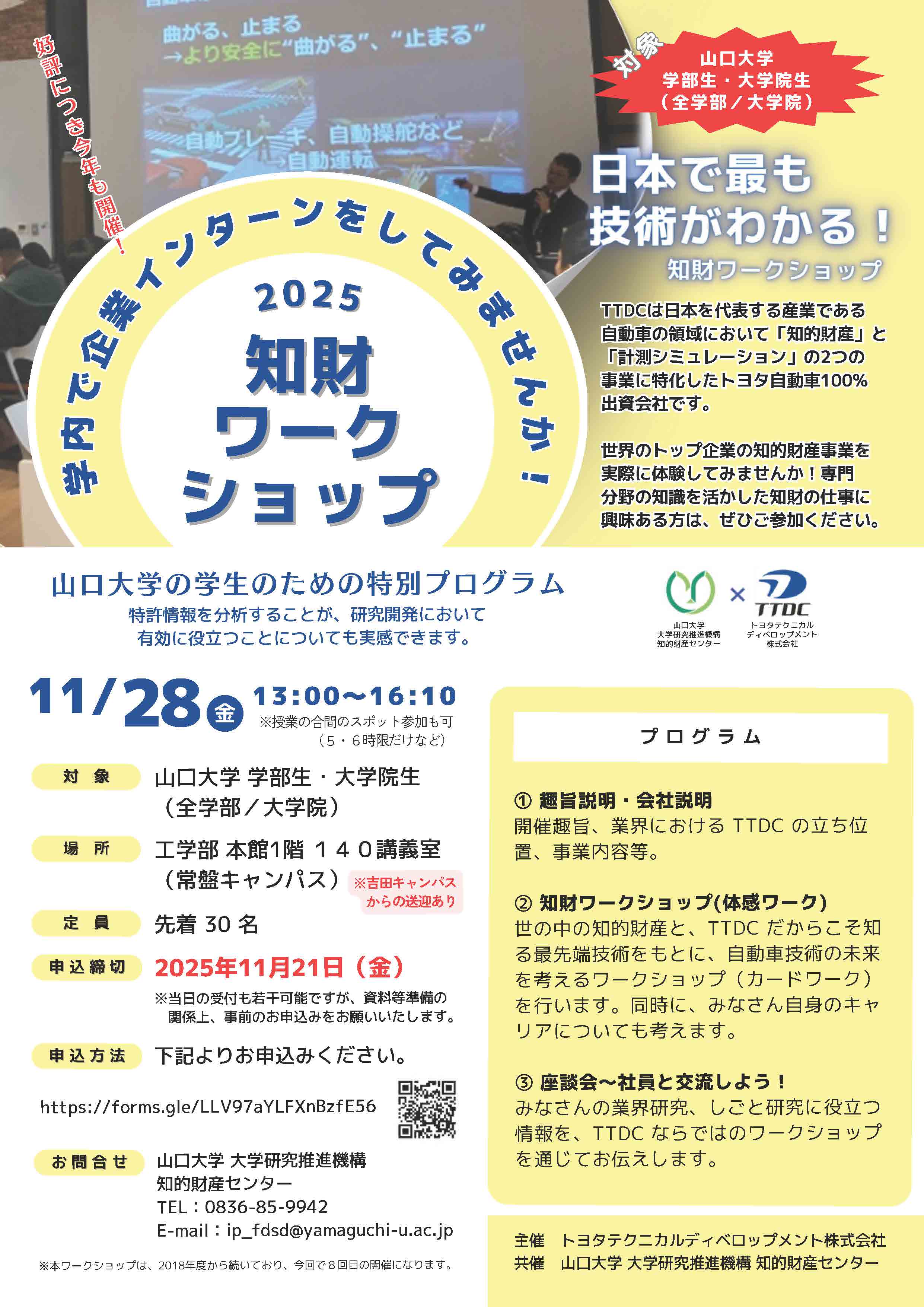 主催 | 主催:トヨタテクニカルディベロップメント株式会社(TTDC) 共催:山口大学 大学研究推進機構 知的財産センター |