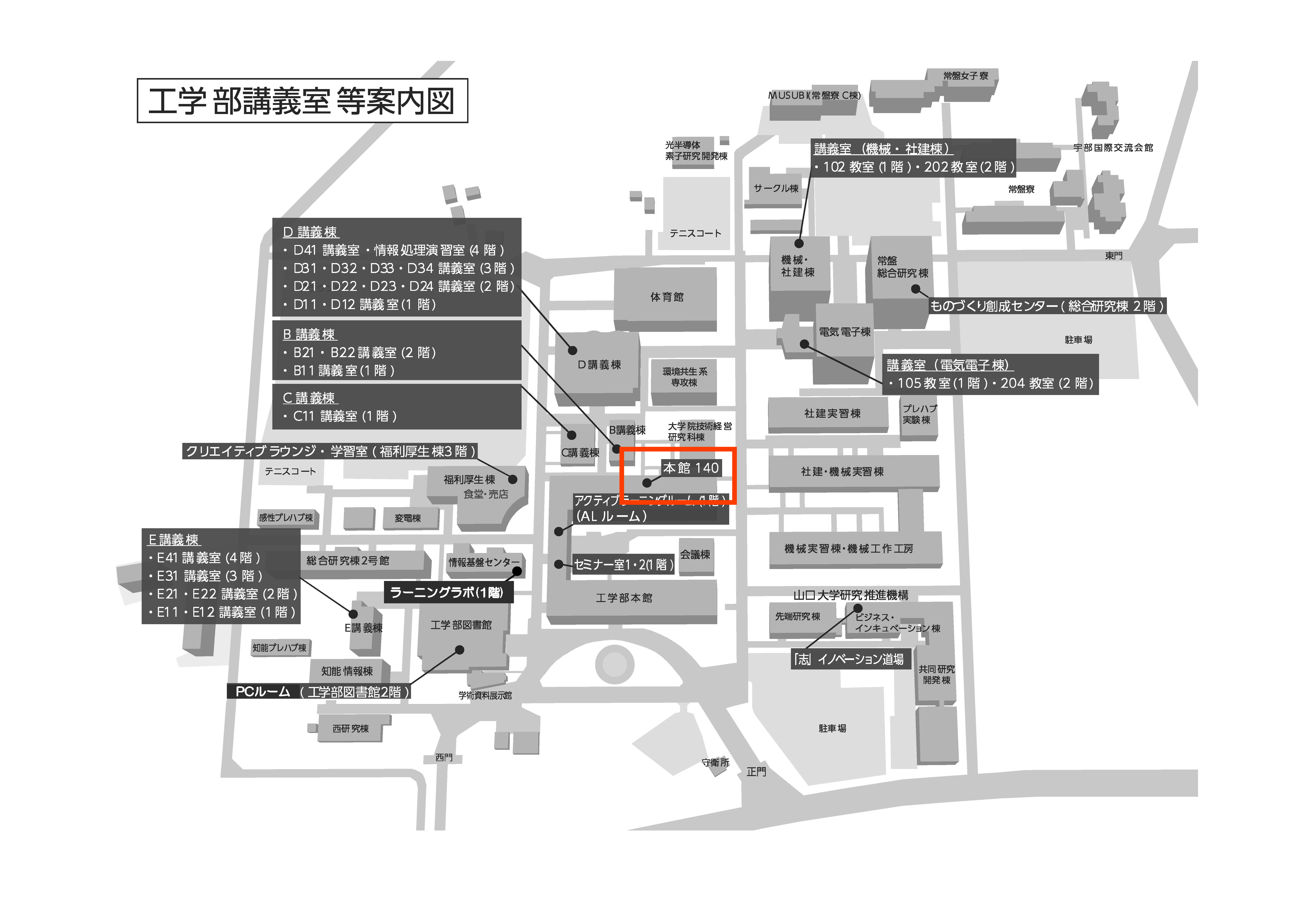 【場所】 山口大学 工学部 本館1階 140講義室 (常盤キャンパス) ※送迎あり:吉田キャンパス ⇔ 常盤キャンパス (下記申込フォームより要申込)
