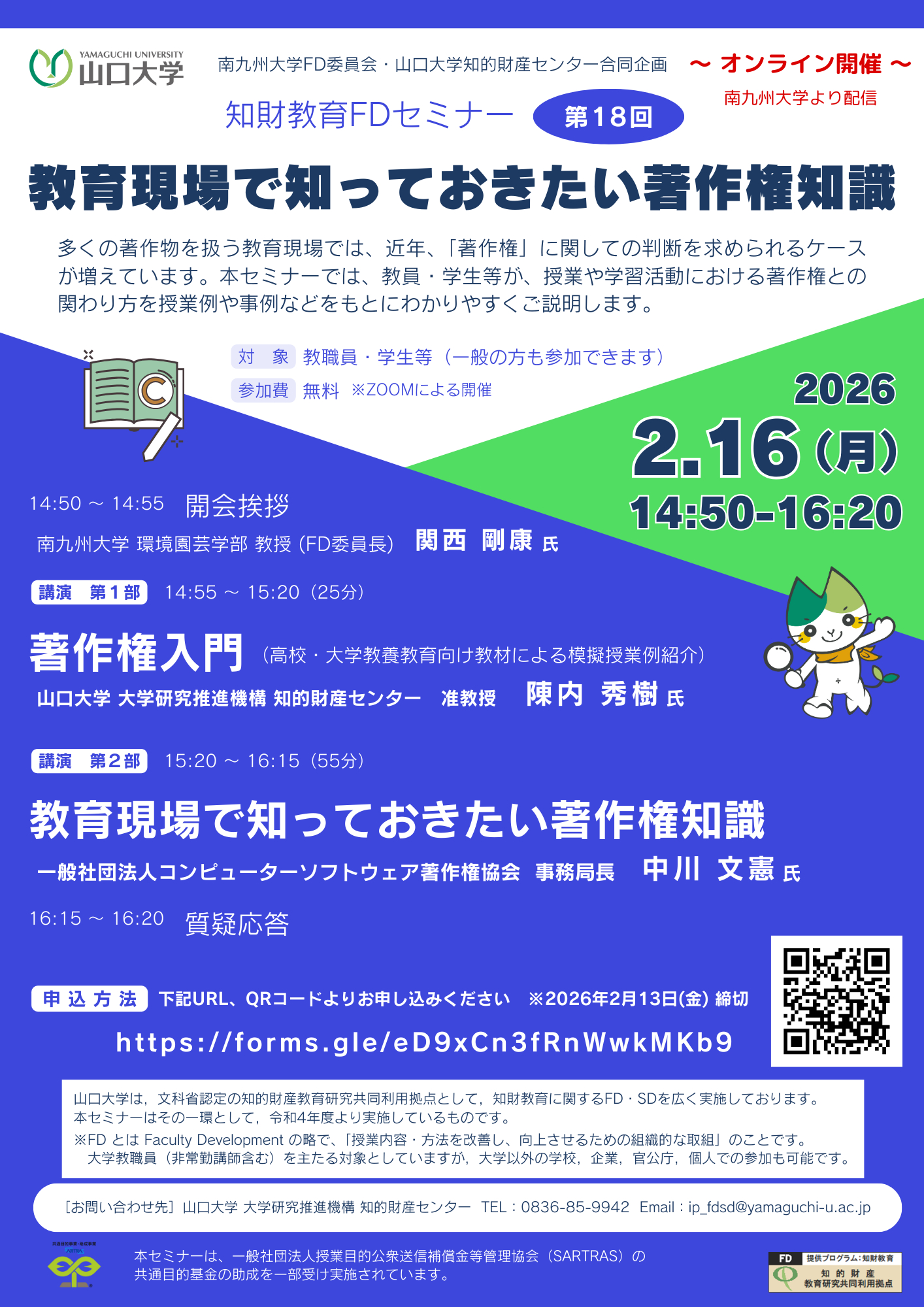 | 資料等 | 20260216_第18回知財教育FDセミナーチラシ |