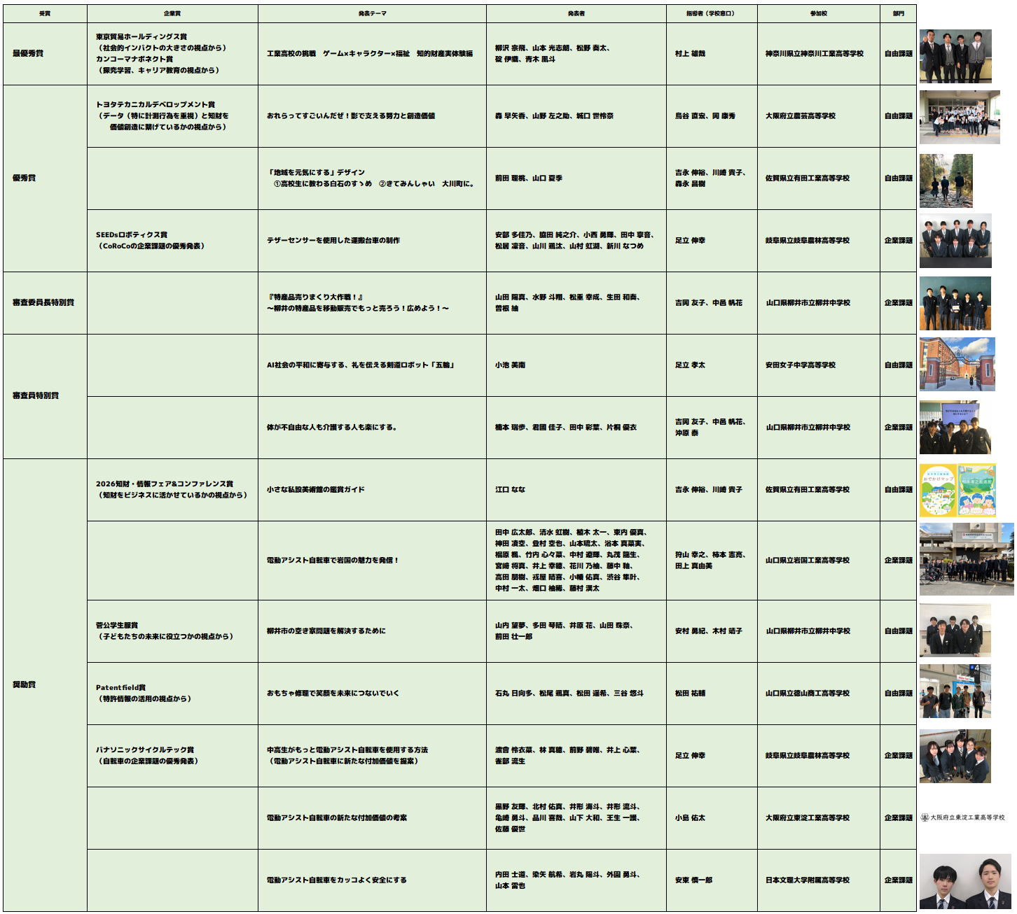 当日は、全国10校、14組にご参加いただき、審査結果は以下の通りに決定いたしました。